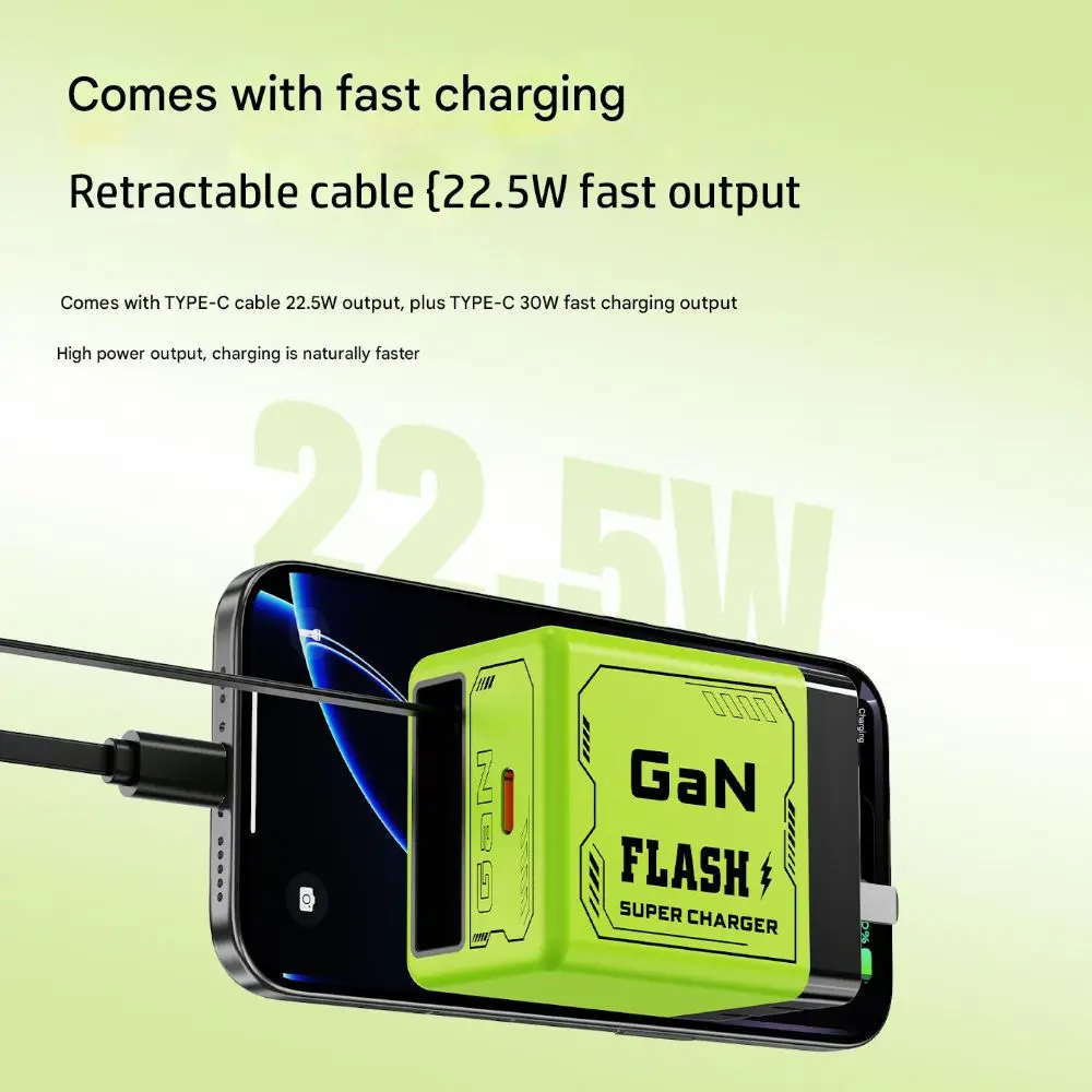 Built-in TYPE-C cable 22.5W output, plus TYPE-C 30W fast charging output high power output, charging is naturally one step faster
