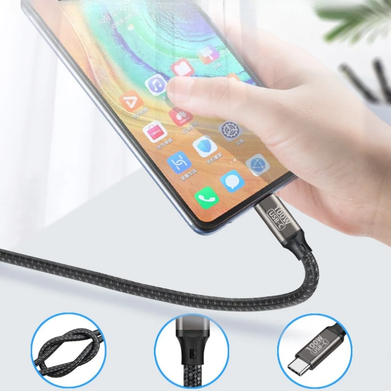 High Power 5A 100W 240W Braid Tablet Mobile Phones USB-C Cable