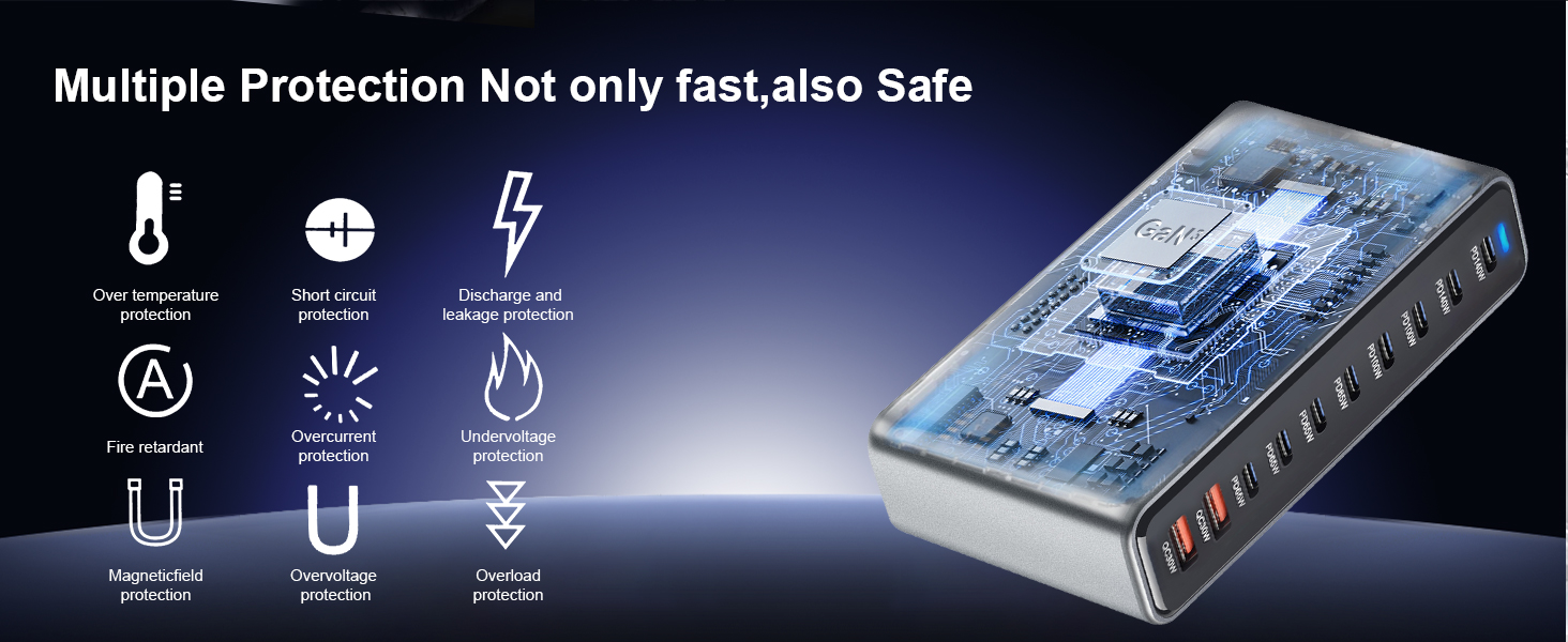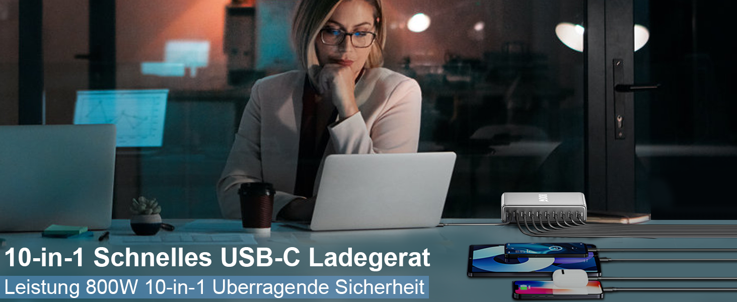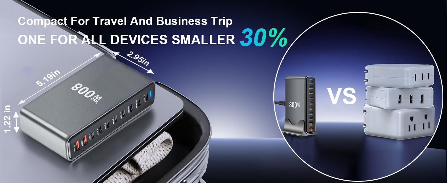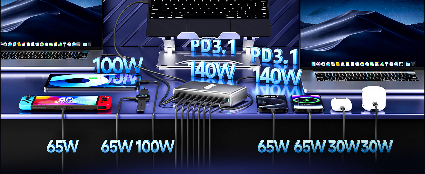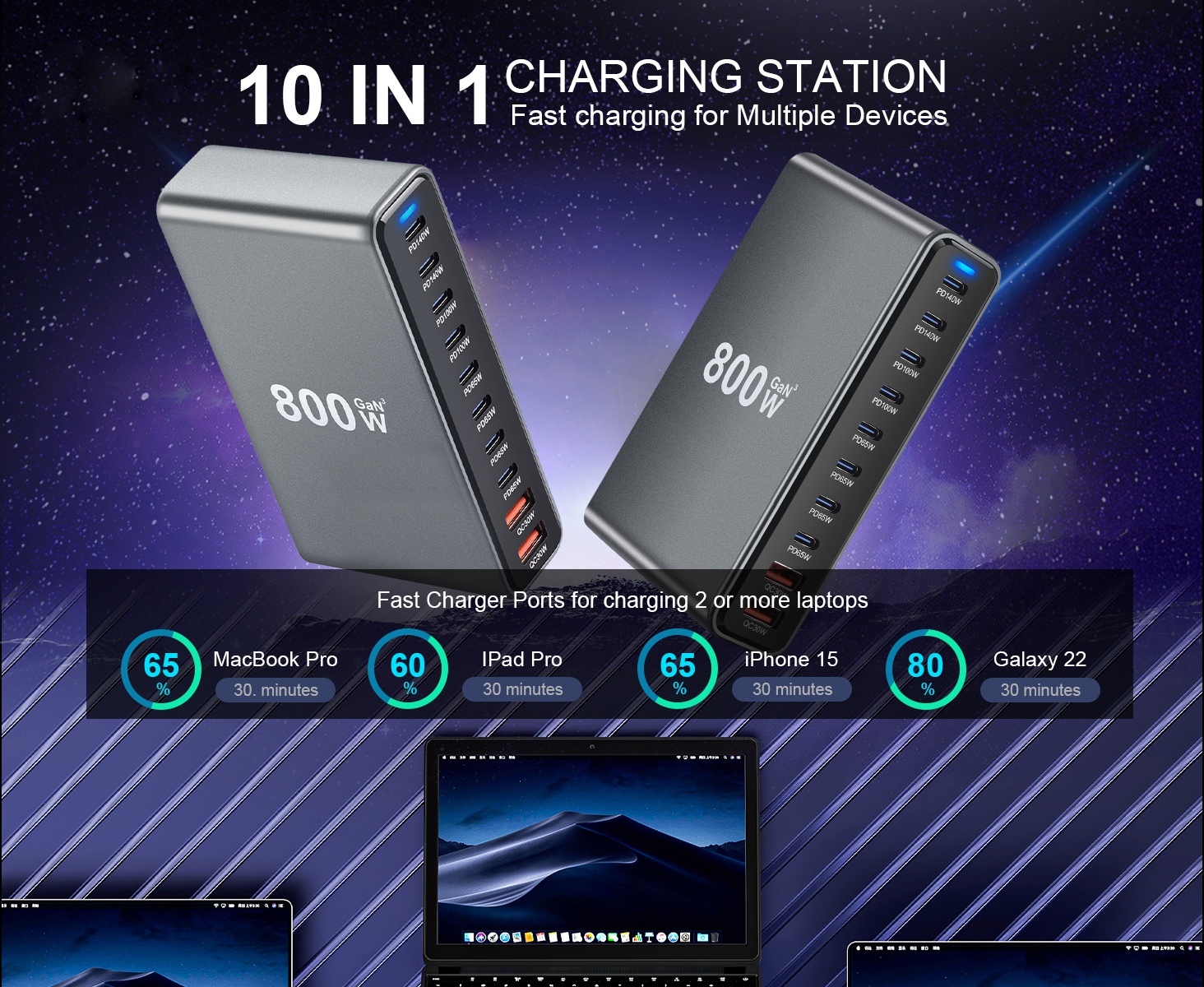 • 800W High-Speed Charging:Power up total 800W charge output, Single 140W max output, simultaneously with 2 x USB-C 140W + 2 x USB-C 100W+4 x USB-C 65W +2 x USB-A 30W