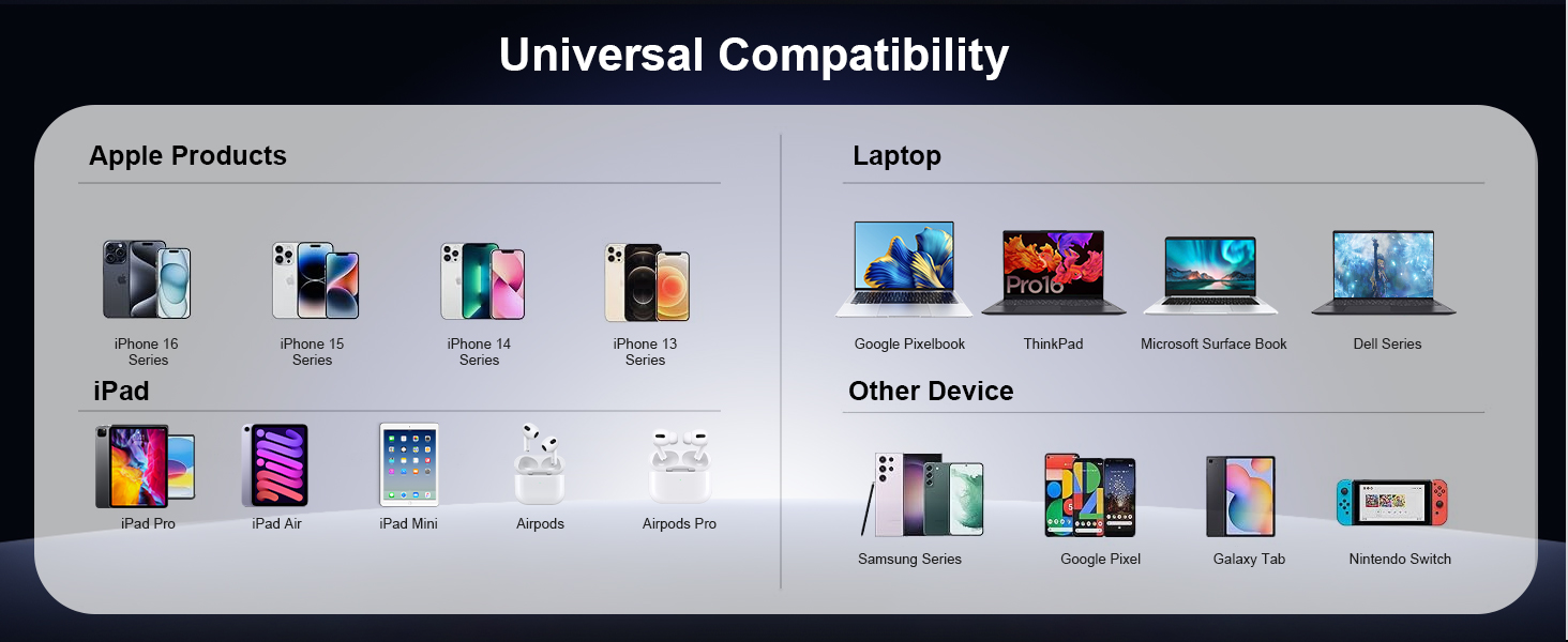 • Ultra- Compact:Replaces 4 Apple chargers in one compact device—perfect for home, work, and travel.