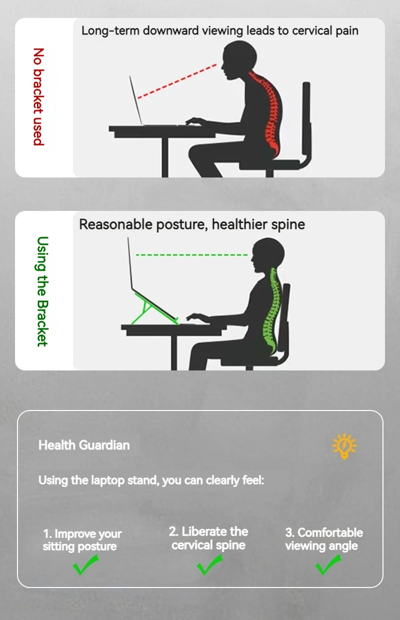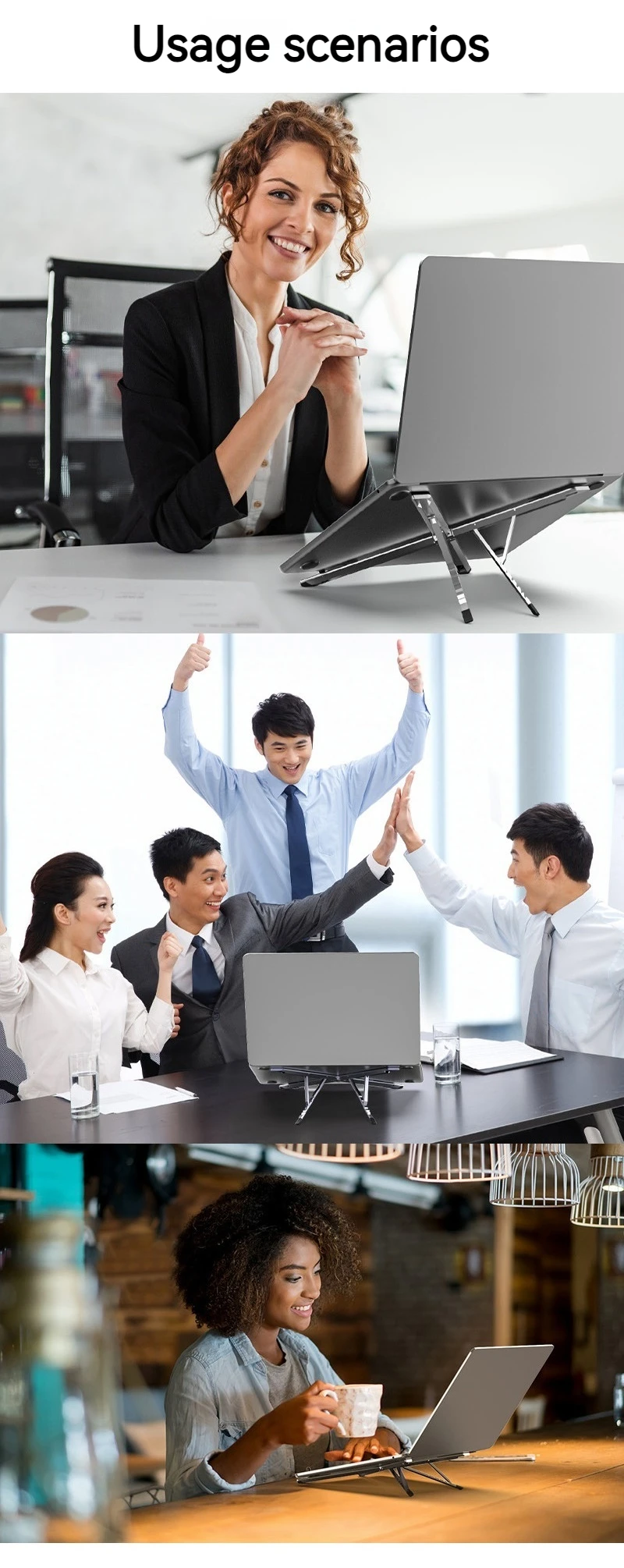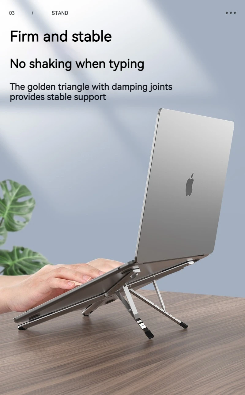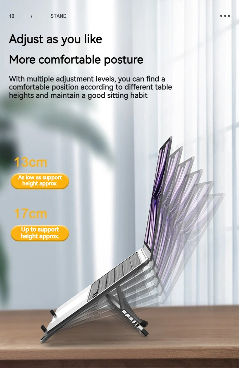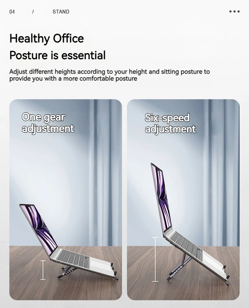 This laptop & tablet stand can elevate your device to 6 different heights to meet your different needs. It also helps to relieve neck and shoulder pain after using laptop for long hours