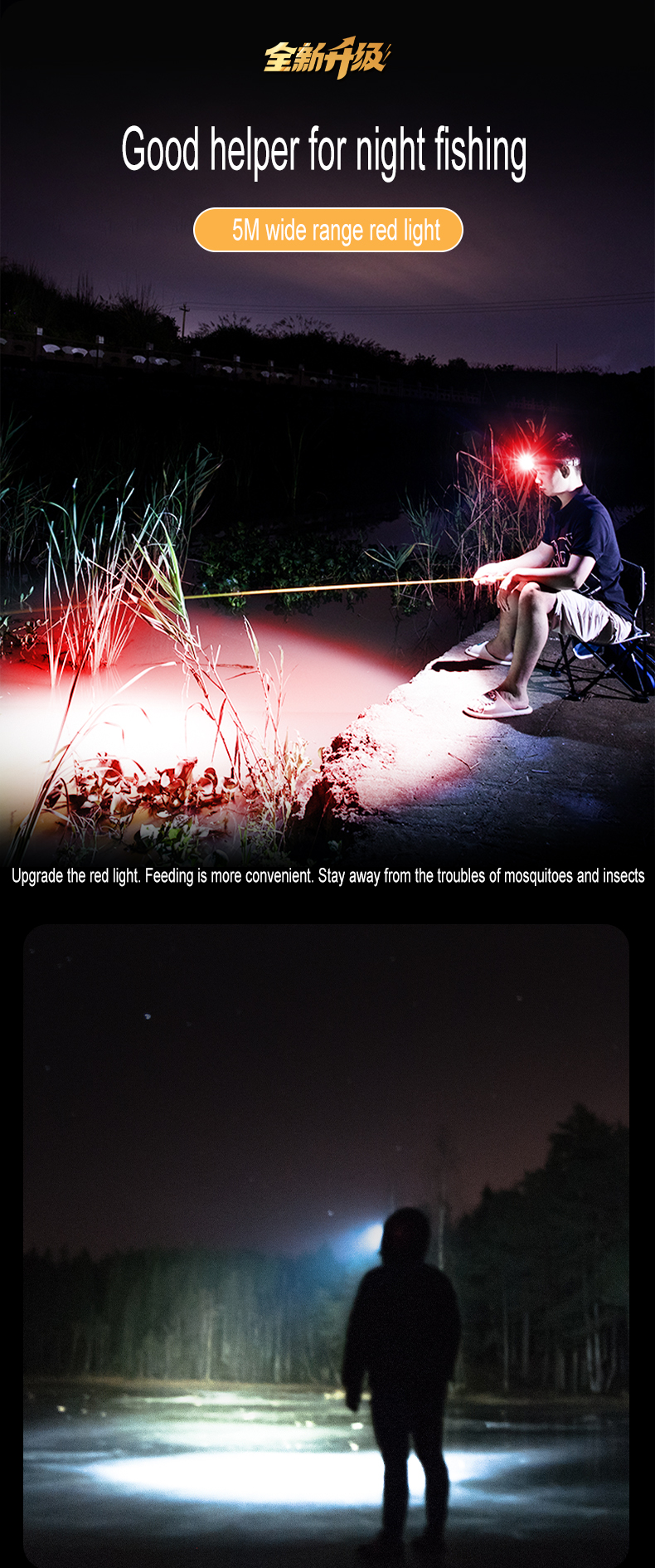 • 2000mAh large rechargeable battery:Greatly increase lighting time.High brightness> 5H, medium brightness> 7.5H, low brightness> 10.5H, red light> 30H